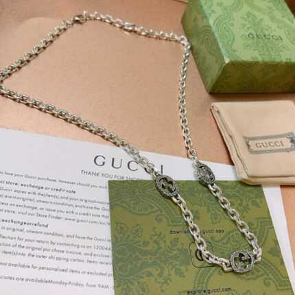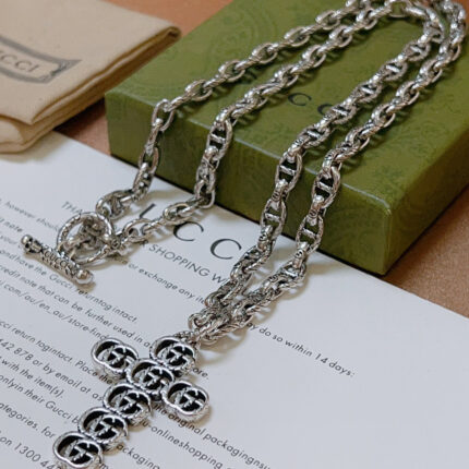 **GUCCI Anger Forest Double G Necklace – The Epitome of Handcrafted Luxury** **Artisanal Excellence** • **Hand-forged 925 silver chain** with