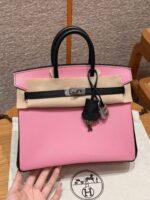 Style:Birkin Colour:5p/Pink and 89/noir Size:25*20*13 Leather:Epsom retourne From France Hardware:silver