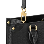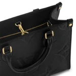 Inspired by Louis Vuitton’s famous Sac Plat from 1968. the Onthego PM tote is fashioned in Monogram Empreinte leather. embossed with a subtle embossed Giant Monogram pattern. This smaller version of the original Onthego fits essentials such as an iPad Mini. Articulated top handles and an adjustable removable strap offer a variety of carry options.