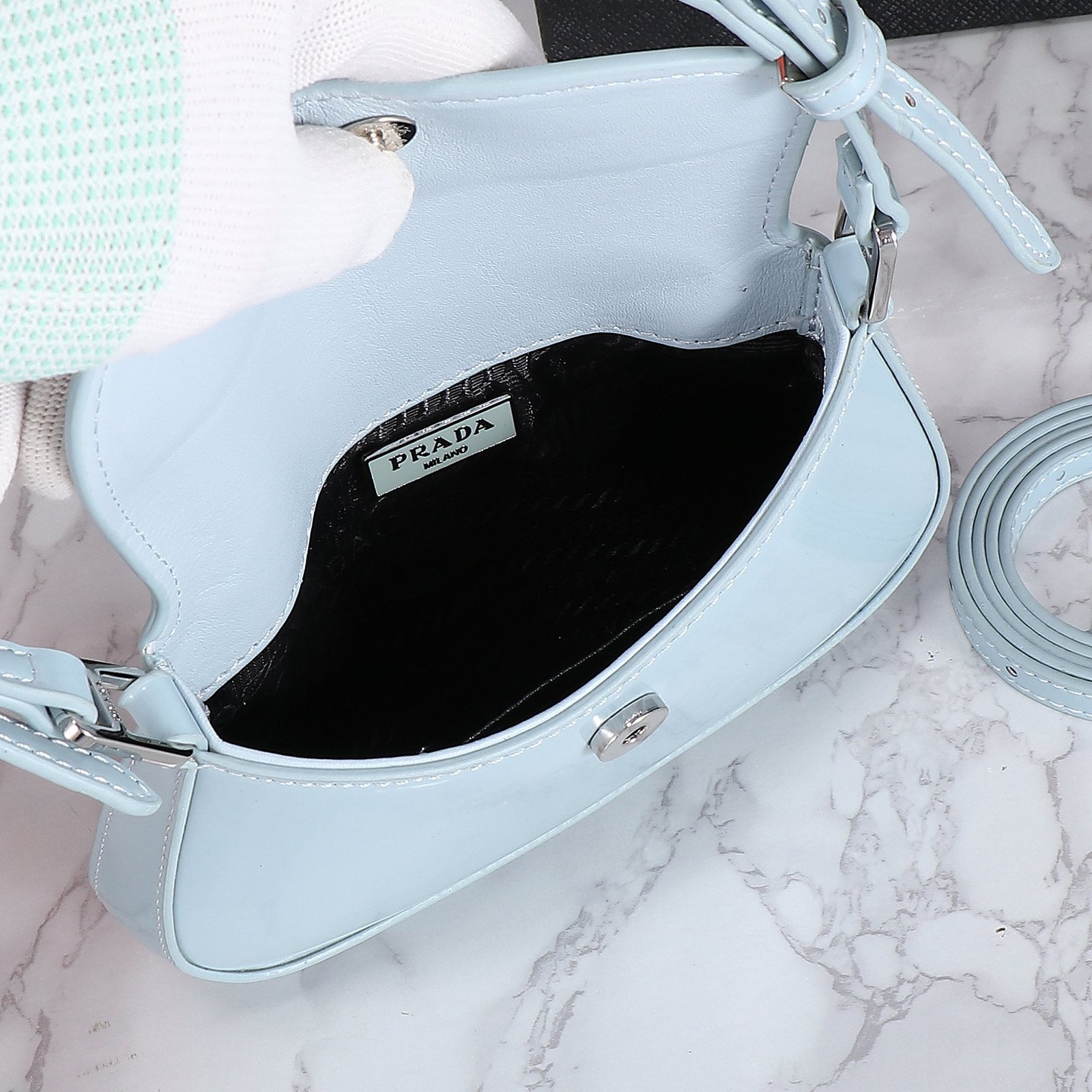 Prada hobo cleo Patent leather 611 blue size:22*13cm