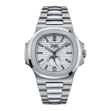 Patek Philippe Watches Nautilus Mens Stainless Steel 5726/1A-010. 40.5mm (at 10-4 o’clock) stainless steel case, sapphire crystal back, silvery white